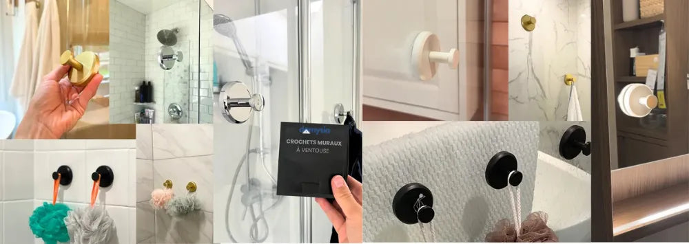 Vous pouvez installer nos Crochets muraux à ventouse sur toutes les surfaces lisses : verre, carrelage, portes de placard…