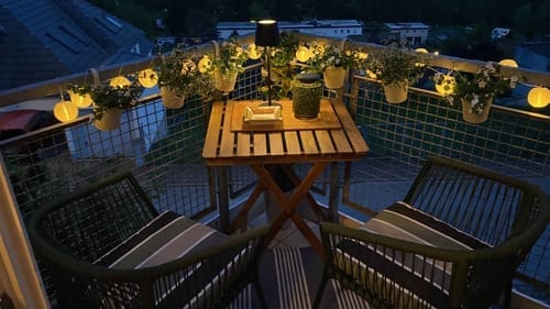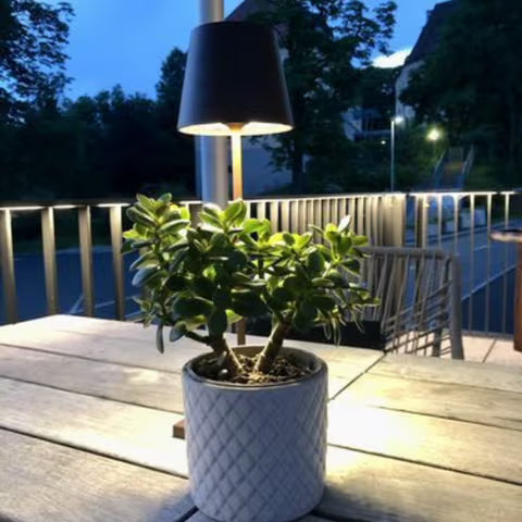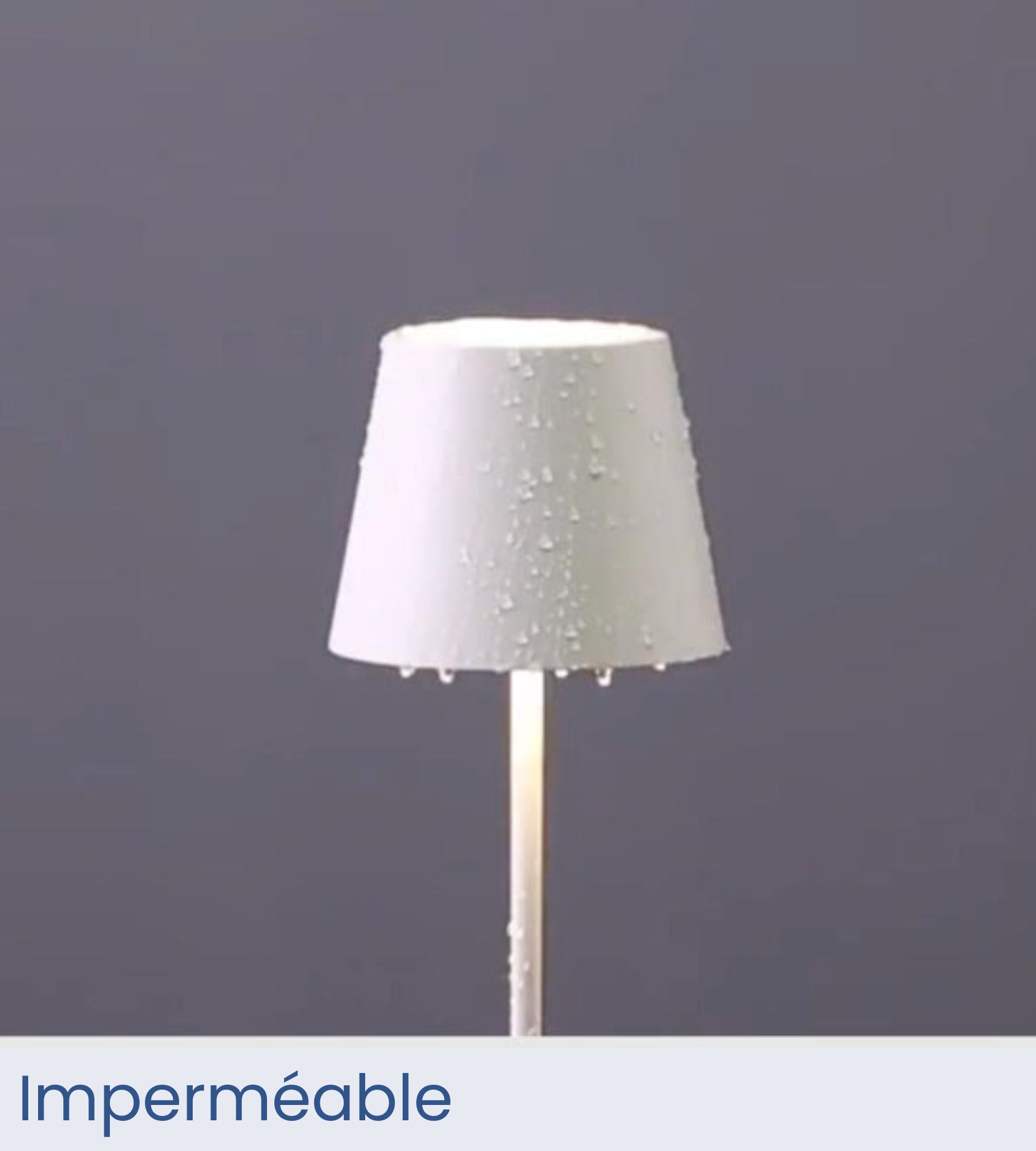 La lampe de domysia est imperméable. Cela signifie que tu peux aussi la laisser sans problème l’été sur ta table dans le jardin ou sur le balcon.