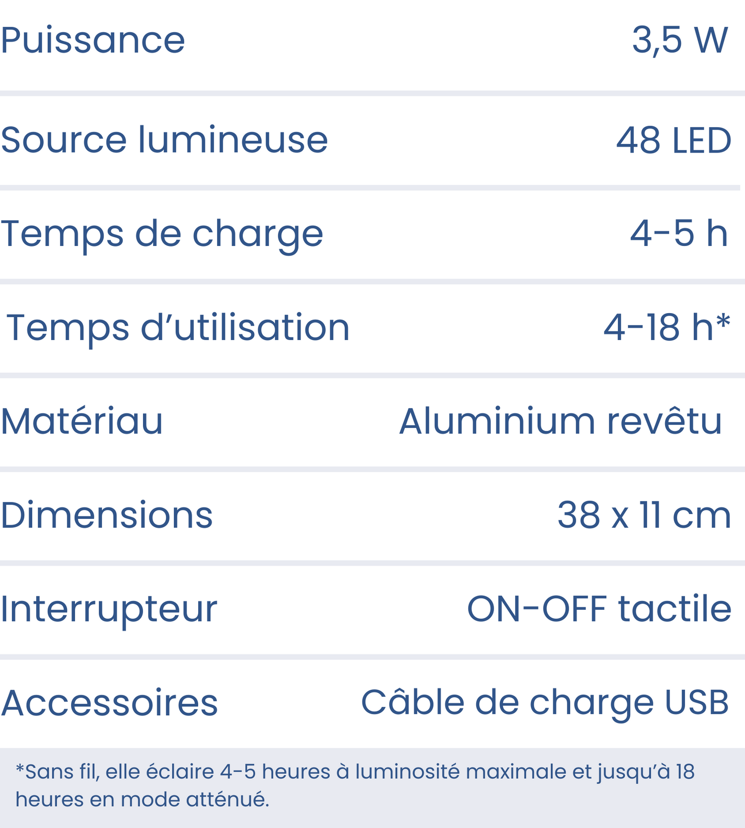 Grâce à la puissante batterie de 5 200 mAh, la lampe domysia peut créer une ambiance harmonieuse pendant 4 à 18 heures (selon le niveau de luminosité), puis être rechargée avec le câble de charge USB fourni.