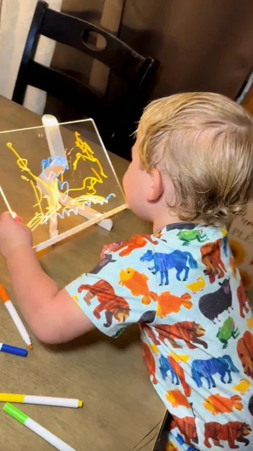 Regardez leurs simples dessins s’illuminer grâce à la lumière LED et se transformer en véritables œuvres d’art éclatantes. Cette expérience ludique et interactive stimule la créativité, permettant aux jeunes artistes d’expérimenter, de s’exprimer et de développer leurs compétences de manière amusante et éducative !